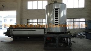 Das nasse Material wird kontinuierlich in die erste Trocknungsschicht auf der Oberseite des Trockners eingespeist.Es wird gedreht und durch Rake gerührt werden, wenn der Rake Arm dreht und fällt bis zum äußeren Rand der großen Trocknungsplatte entlang der exponentiellen spiralen LinieDas Material wird von der kleinen Trocknungsplatte auf die äußere Kante bewegt und auf die äußere Kante der großen Trocknungsplatte unten fallen.Sowohl kleine als auch große Trocknungsplatten sind abwechselnd angeordnet, so dass die Materialien durch den Trockner kontinuierlich gehen könnenDas Wärmemedium kann gesättigter Dampf, heißes Wasser oder thermisches Öl sein.Die getrockneten Materialien fallen von der letzten Schicht der Trocknungsplatte auf den Boden des Trockners und werden dann durch Rechen zum Abfluss abgeleitet. Die Materialfeuchtigkeit wird aus dem Abgasloch auf der oberen Abdeckung entfernt. Für den Vakuum-Typ-Tellertrockner wird die Feuchtigkeit durch die Vakuumpumpe auf der oberen Abdeckung ausgesogen.Die getrockneten Materialien werden aus der unteren Schicht entlassen.Die Trocknungsfähigkeit kann verbessert werden, wenn der Trockner mit ergänzenden Einrichtungen wie Flossenheizung, Kondensator für Lösungsmittelentnahme, Taschenstaubentferner, Rückkehr- und Mischmechanismus, Zugventilator,und usw..